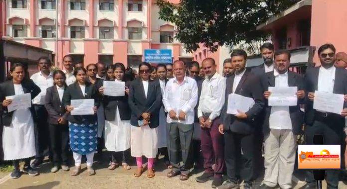 निवेदन देताना अधिवक्ता संघाचे अध्यक्ष ऍडव्होकेट. किशोर आखाडे, सचिव ऍडव्होकेट. प्रमोद ब्राह्मणवाडे, एडवोकेट संजय ठाकरे, ऍडव्होकेट. कविता मोहरकर यांच्यासह मोठ्या संख्येने वकील उपस्थित होते.
