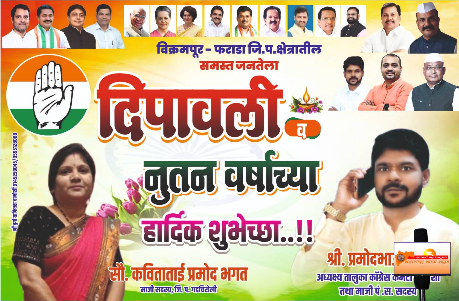 सामाजिक काँग्रेस पक्षाचे चामोर्शी तालुका अध्यक्ष प्रमोद भगत यांच्या वतीने दिवाळीच्या हार्दिक शुभेच्छा… By Maharashtra maza News - October 21, 2025 0 89 Share WhatsAppTelegramFacebookX