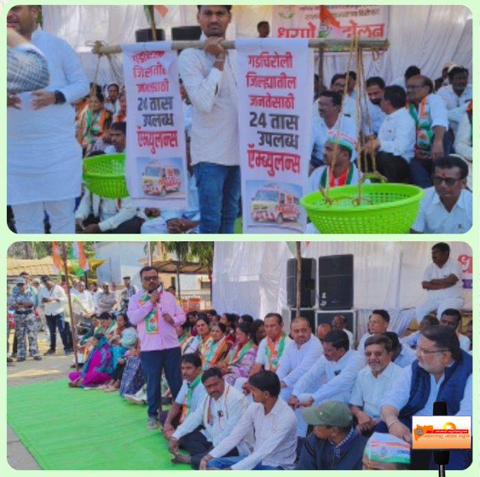 गडचिरोली : गडचिरोली जिल्ह्यातील ढासळलेली आरोग्य व्यवस्था आणि दयनीय पायाभूत सुविधांविरोधात आज काँग्रेस पक्षाच्या वतीने शहरातील इंदिरा गांधी चौकात जोरदार धरणे आंदोलन करण्यात आले. या आंदोलनात काँग्रेस पक्षाचे प्रमुख नेते, पदाधिकारी तसेच शेकडो कार्यकर्ते मोठ्या संख्येने सहभागी झाले होते.